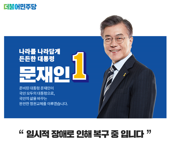 하지만 유권자들의 높은 관심 덕에 홈페이지 접속 장애가 발생했고 오후 5시 45분까지도 '일시적 장애로 인해 복구 중입니다'라는 메시지와 함께 19대 대선 후보 문재인의 사진이 담겼다.