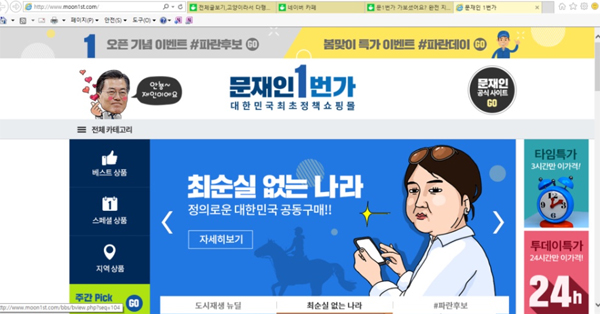 ▲'문재인 1번가' 홈페이지 화면(사진=문재인 1번가 홈페이지)