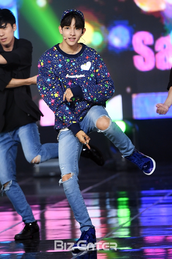 사무엘이 23일 오후 경기도 고양시 일산 MBC드림센터에서 진행된 MBC뮤직 생방송 ‘쇼! 챔피언’(이하 쇼챔)에서 화려한 무대를 펼치고 있다.