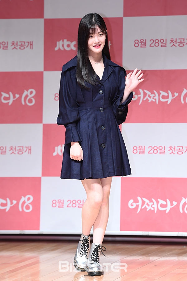 배우 이유비가 24일 오후 서울 마포구 상암동 JTBC에서 열린 웹드라마 '어쩌다18’(극본 유수지, 연출 김도형) 제작발표회에 참석해 포즈를 취하고 있다.