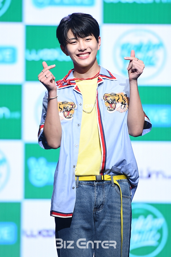 골든차일드 최보민이 28일 오후 서울 용산구 한남동 블루스퀘어 삼성카드홀에서 열린 첫 번째 미니앨범 ‘골-차(Gol-Cha!)’ 데뷔 쇼케이스에서 포즈를 취하고 있다.
