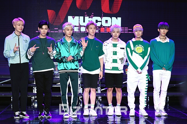 블랑세븐이 1일 오전 서울 마포구 상암동 MBC 골든마우스홀에서 열린 '2017 서울국제뮤직페어(MU:CON 2017 / 이하 뮤콘)' 기자간담회에 참석해 포즈를 취하고 있다.