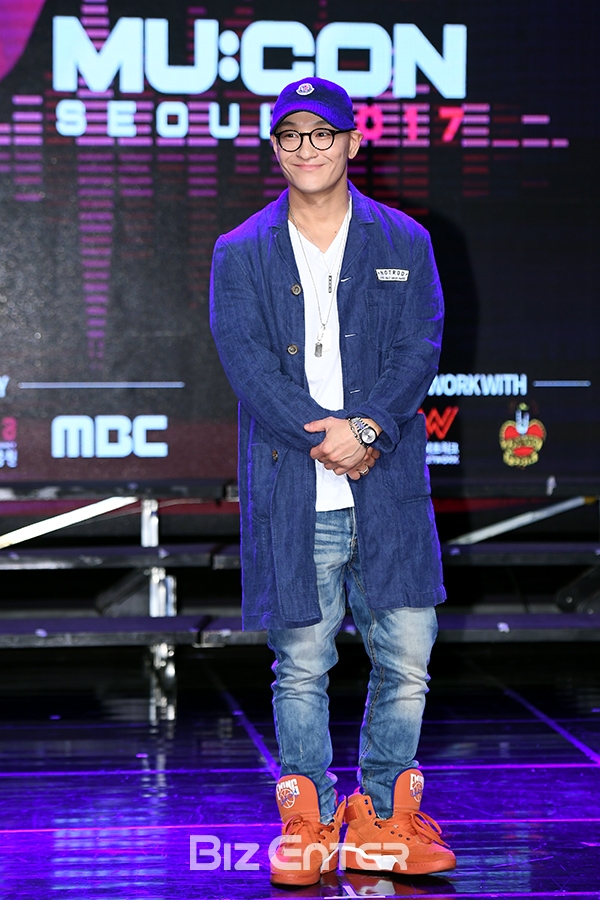 MC 스나이퍼가 1일 오전 서울 마포구 상암동 MBC 골든마우스홀에서 열린 '2017 서울국제뮤직페어(MU:CON 2017 / 이하 뮤콘)' 기자간담회에 참석해 포즈를 취하고 있다.