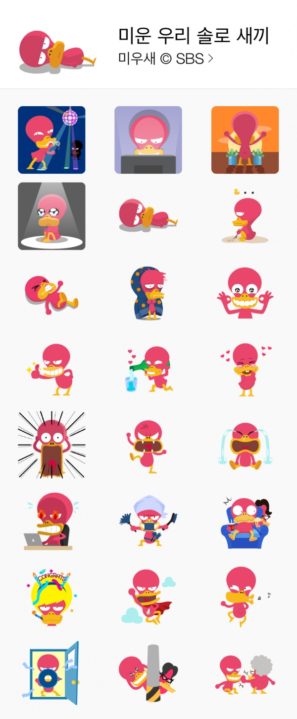 SBS는 11일 “‘미운 우리 새끼(이하 미우새)’의 캐릭터를 활용한 카카오톡 이모티콘 ‘미운 우리 솔로 새끼’ 24종 패키지를 출시했다”고 밝혔다.
