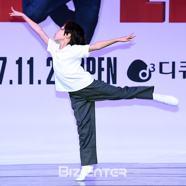 '빌리' 역 맡은 배우 성지환이 12일 오전 서울 중구 더 플라자호텔 그랜드볼룸에서 열린 뮤지컬 ‘빌리 엘리어트’ 제작발표회에 참석해 극 중 한 장면을 선보이고 있다.