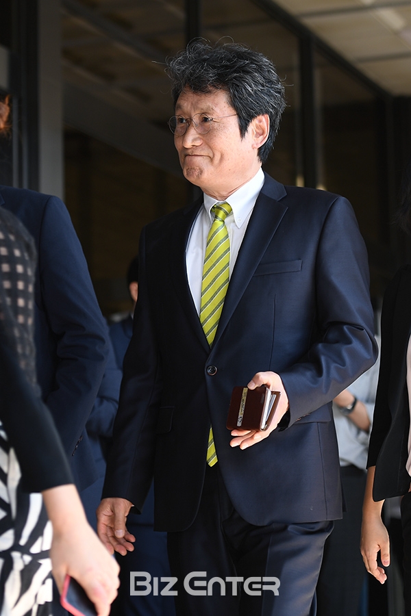 [BZ포토] 'MB 블랙리스트' 피해자 문성근, 밝은 표정으로 검찰 출석
