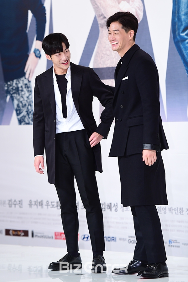 배우 우도환, 유지태가 10일 오후 서울 영등포 타임스퀘어 아모리스홀에서 열린 KBS 수목드라마 ‘매드독’(극본 김수진, 연출 황의경) 제작발표회에 참석해 포즈를 취하고 있다.