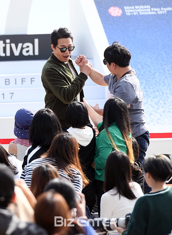 배우 박성웅이 13일 오후 부산광역시 해운대구 중동 비프빌리지에서 열린 '제22회 부산국제영화제(BIFF, 이하 부국제)’ 영화 '메소드' 무대인사에 참석해 관객들과 만남을 갖고 있다.