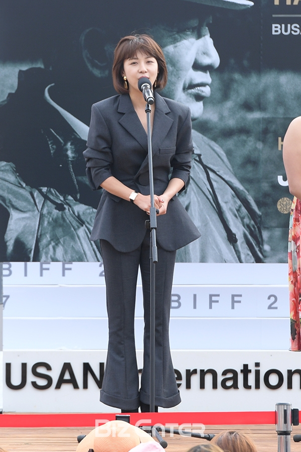 배우 하지원이 14일 오후 부산광역시 해운대구 중동 비프빌리지에서 열린 '제22회 부산국제영화제(BIFF, 이하 부국제)’ 영화 ‘맨헌트’(감독 오우삼) 무대인사에 참석해 관객들과 만남을 갖고 있다.
