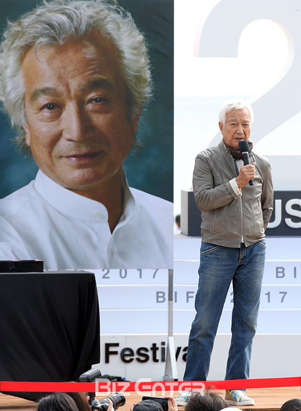 배우 신성일이 14일 오후 부산광역시 해운대구 중동 비프빌리지에서 열린 '제22회 부산국제영화제(BIFF, 이하 부국제)’ 핸드프링팅 행사에 참석해 관객들과 만남을 갖고 있다.