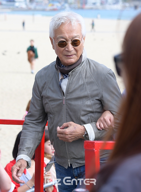 배우 신성일이 14일 오후 부산광역시 해운대구 중동 비프빌리지에서 열린 '제22회 부산국제영화제(BIFF, 이하 부국제)’ 핸드프링팅 행사를 마치고 퇴장하고 있다.