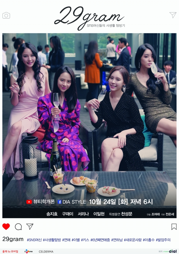 '29그램'은 인스타그램에서 활동하는 29세 연유진(송지효 분)을 중심으로 SNS 유명인들의 삶과 사랑에 대한 이야기를 담는다. 송지효 외에도 배우 서리나, 이일현 등이 출연한다.