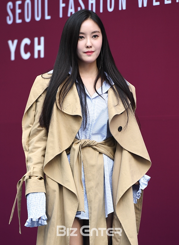티아라 효민이 19일 오후 서울 중구 동대문디자인플라자(DDP)에서 열린 '2018 S/S 헤라 서울패션위크(HERA SeoulFashion Week)' 윤춘호 디자이너의 와이씨에이치(YCH)쇼에 참석해 포즈를 취하고 있다.