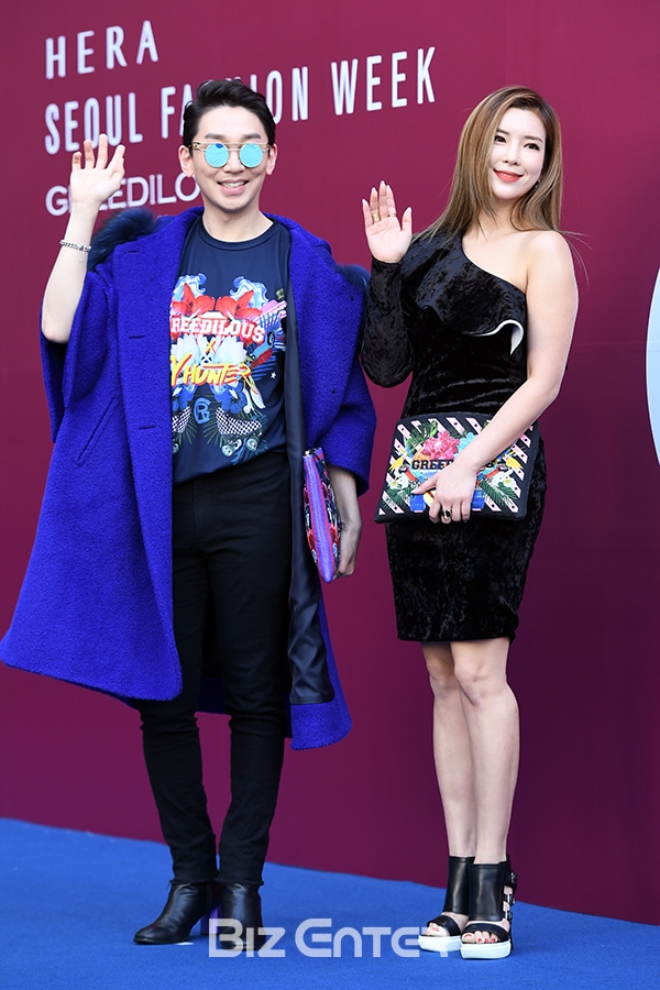 배우 김호영, 정선아가 19일 오후 서울 중구 동대문디자인플라자(DDP)에서 열린 '2018 S/S 헤라서울패션위크(HERA SeoulFashion Week)' 박윤희 디자이너의 그리디어스(GREEDILOUS) 쇼에 참석해 포즈를 취하고 있다.