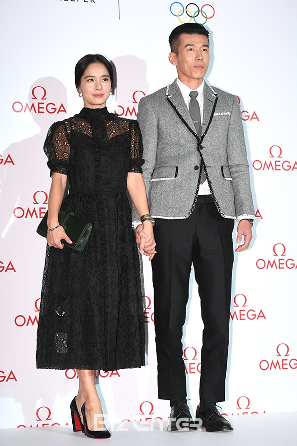 정혜영, 션 부부가 1일 오후 서울 중구 소공동 웨스틴 조선호텔에서 열린 ‘오메가 평창 동계올림픽 D-100 갈라 디너’ 행사에 참석해 포즈를 취하고 있다.