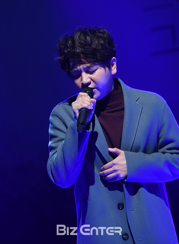 어반자카파 권순일이 8일 오전 서울 강남구 청담동 일지아트홀에서 열린 '그때의 나, 그때의 우리' 발매 쇼케이스에서 무대를 펼치고 있다.