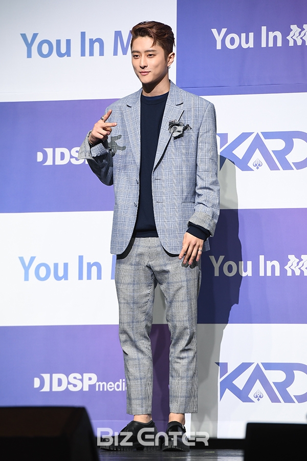 혼성그룹 카드(KARD) 제이셉이 21일 오후 서울 광진구 예스24 라이브홀에서 열린 두 번째 미니앨범 ‘유앤미(YOU&ME)’ 발매 쇼케이스에서 포즈를 취하고 있다.