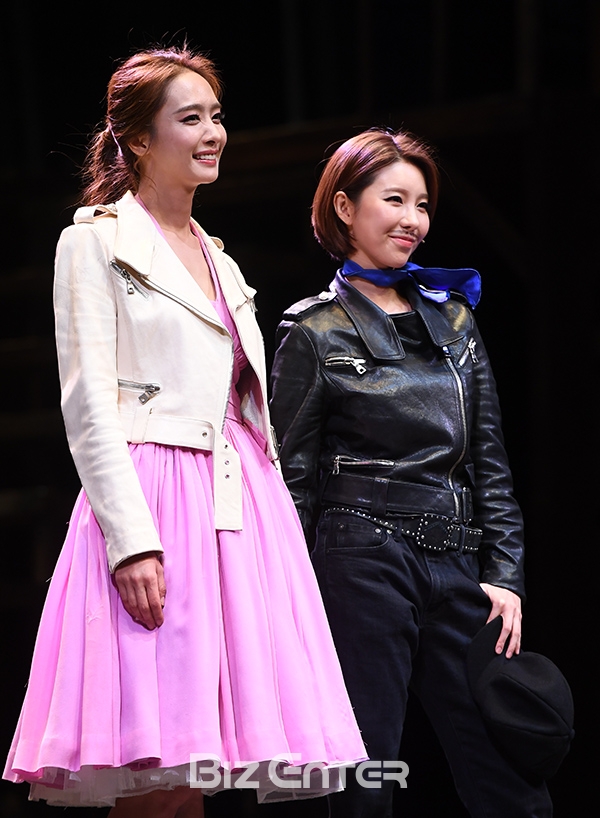 배우 박정아, 가수 제이민이 30일 오후 서울 홍익대학교 대학로 아트센터에서 열린 뮤지컬 ‘올슉업’ 프레스콜에서 포즈를 취하고 있다.
