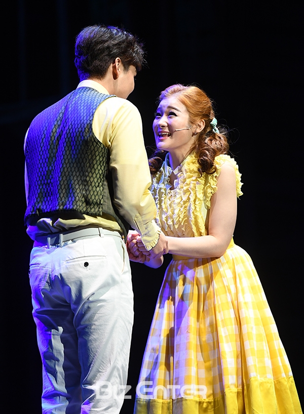 배우 김태규, 곽나윤이 30일 오후 서울 홍익대학교 대학로 아트센터에서 열린 뮤지컬 ‘올슉업’ 프레스콜에서 극 중 한 장면을 선보이고 있다.