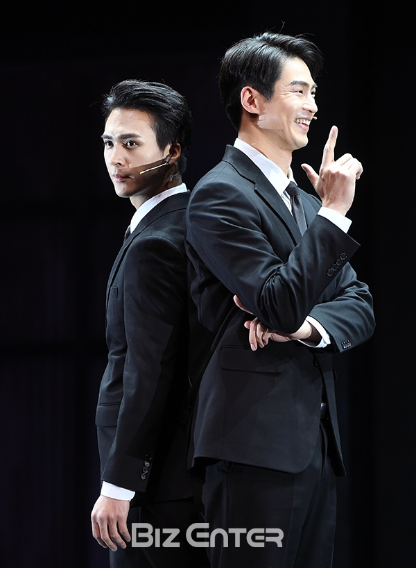 하이라이트 손동운, 배우 김산호가 12일 오후 서울 중구 충무아트센터 대극장에서 열린 뮤지컬 ‘모래시계’ 프레스콜에 참석해 포즈를 취하고 있다.