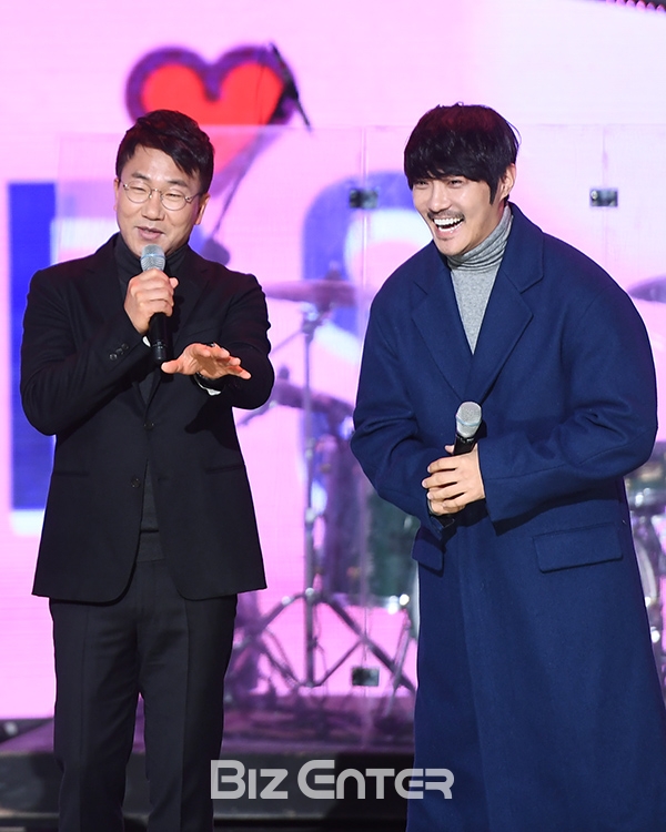 방송인 유영재, 가수 KCM이 14일 오후 서울 마포구 상암동 SBS프리즘타워 오디토리움에서 열린 SBS 러브FM 패밀리 콘서트 ‘위드 프렌즈’에서 인사를 하고 있다.