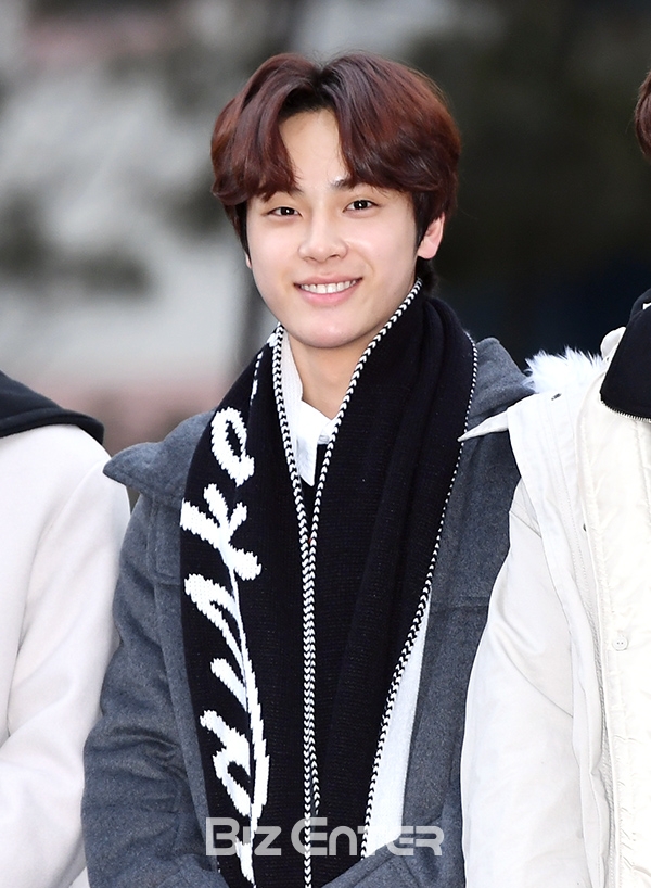 더보이즈 주학년이 22일 오전 서울 영등포구 여의도 KBS 신관 공개홀에서 열린 KBS 2TV '뮤직뱅크'(뮤뱅) 리허설에 참석하기 위해 방송국으로 들어서 인사를 하고 있다.