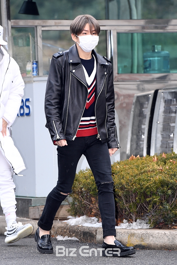 몬스타엑스 기현이 22일 오전 서울 영등포구 여의도 KBS 신관 공개홀에서 열린 KBS 2TV '뮤직뱅크'(뮤뱅) 리허설에 참석하기 위해 방송국으로 들어서 인사를 하고 있다.