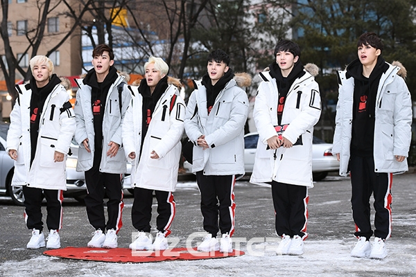 BLK가 22일 오전 서울 영등포구 여의도 KBS 신관 공개홀에서 열린 KBS 2TV '뮤직뱅크'(뮤뱅) 리허설에 참석하기 위해 방송국으로 들어서 인사를 하고 있다.