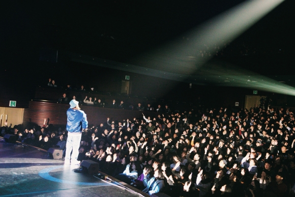 힙합 뮤지션 넉살이 24일 경제신문 이투데이와 공연 전문 기획사 1986, 강동아트센터가 주최하는 크리스마스 콘서트 ‘원 아워(One Hour)’에서 800여 명의 관객 앞에서 열창 중이다.