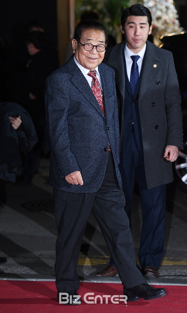 방송인 송해가 26일 오후 서울 강남구 신사동 S653클럽에서 열린 ‘올투게더 아시아 어워즈 파티’에 참석하기 위해 입장하고 있다.