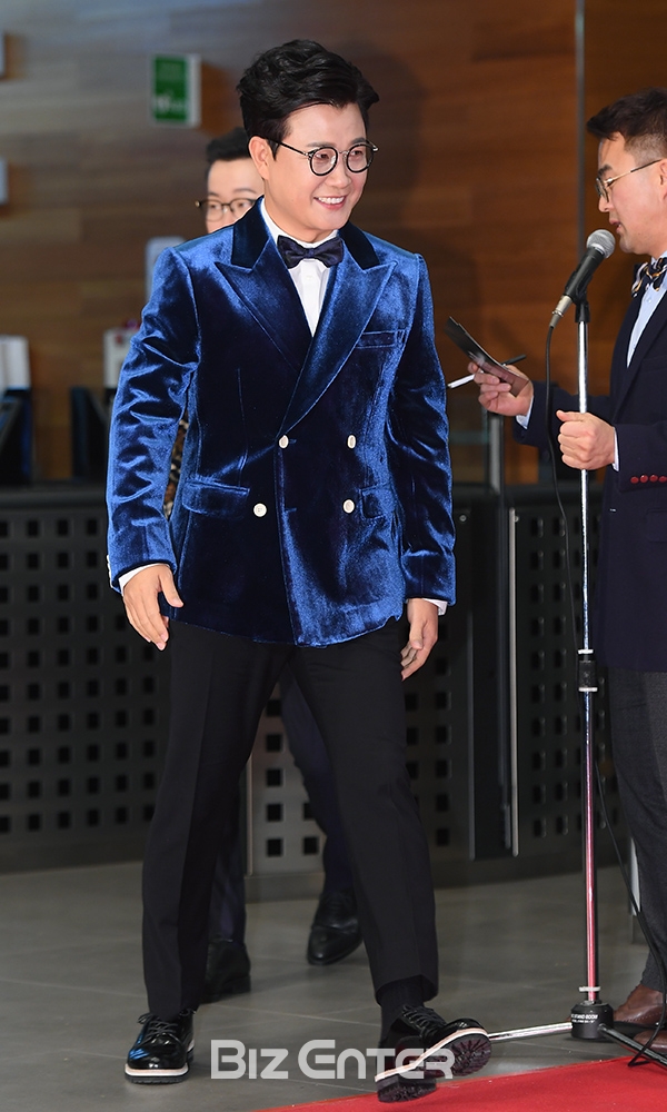 방송인 김성주가 29일 저녁 서울 마포구 상암동 MBC 신사옥에서 열린 '2017 MBC 방송연예대상' 시상식 레드카펫 행사에 참석해 포즈를 취하고 있다.