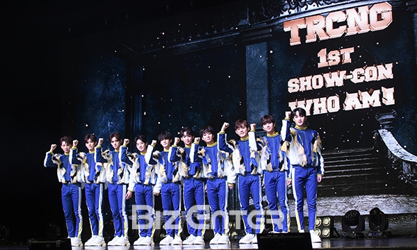 TRCNG가 2일 오후 서울 광진구 광장동 예스24 라이브홀에서 열린 TRCNG 첫 번째 싱글앨범 ‘후 엠 아이(WHO AM I)’ 발매 쇼케이스에서 포즈를 취하고 있다.