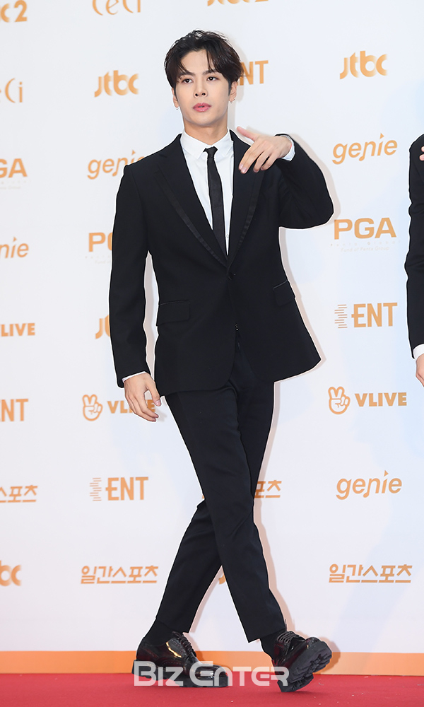 갓세븐 잭슨이 11일 오후 경기도 고양시 일산서구 킨텍스에서 열린 ‘제32회 골든디스크 시상식’(2018 골든디스크)에 참석하기 위해 입장하고 있다.