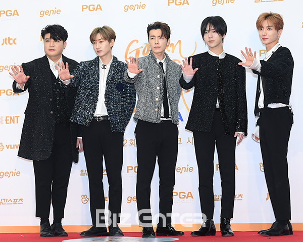 슈퍼주니어가 11일 오후 경기도 고양시 일산서구 킨텍스에서 열린 ‘제32회 골든디스크 시상식’(2018 골든디스크)에 참석해 포토타임을 갖고 있다.