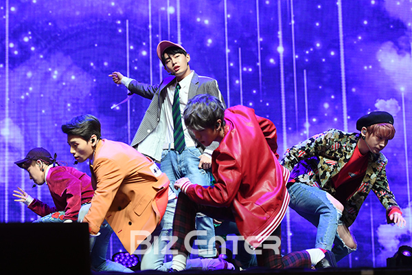 JBJ가 17일 오후 서울 광진구 광장동 예스24 라이브홀에서 열린 JBJ 두 번째 미니앨범 ‘트루 컬러즈(TRUE COLORS)’ 발매 쇼케이스에서 무대를 선보이고 있다.