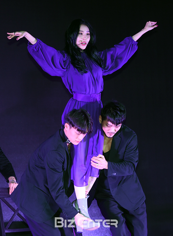 가수 선미가 18일 오후 서울 강남구 삼성동 라마다 서울 그레이스가든홀에서 열린 새 싱글 ‘주인공(Heroine)’ 발매 쇼케이스에서 무대를 선보이고 있다.