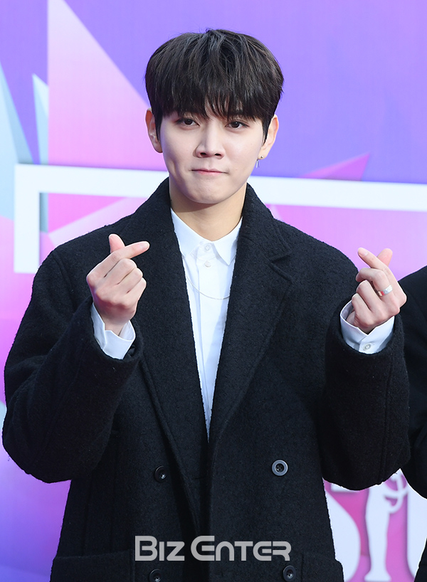뉴이스트W 렌이 25일 오후 서울 구로구 고척 스카이돔에서 열린 ‘제27회 하이원 서울가요대상’ 시상식 레드카펫 행사에 참석해 포즈를 취하고 있다.