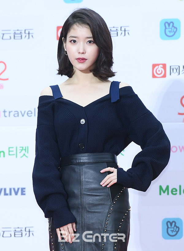 가수 아이유가 14일 오후 서울 송파구 잠실종합운동장 실내체육관에서 열린 ‘제7회 가온차트 뮤직 어워즈’(2018 가온차트 K-POP 어워드) 레드카펫 행사에 참석하고 있다.