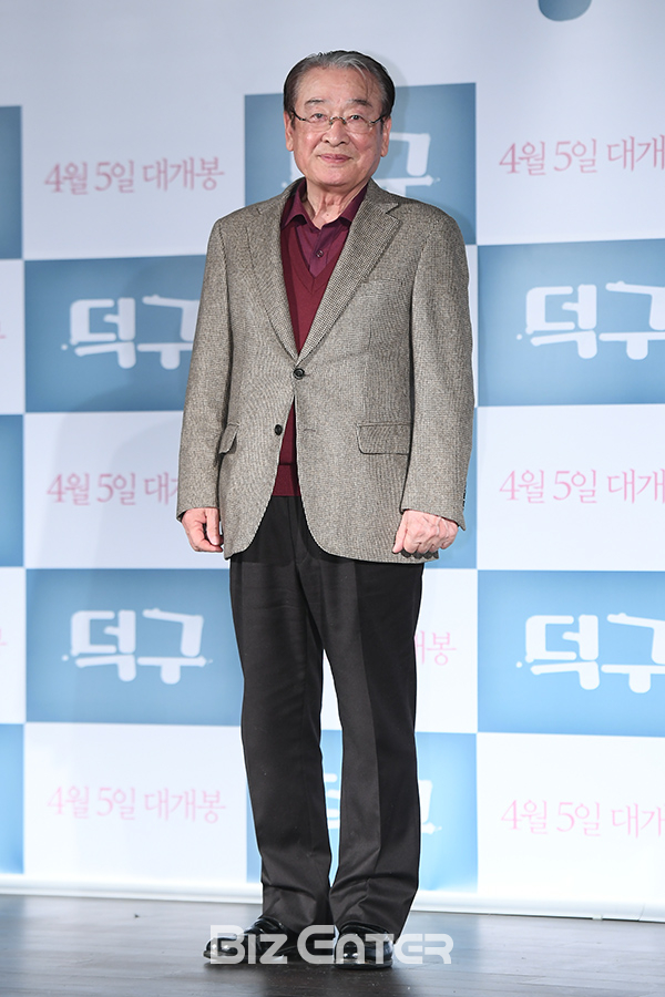 배우 이순재가 14일 오전 서울 중구 메가박스 동대문에서 열린 영화 ‘덕구’(감독 방수인) 제작보고회에 참석해 포즈를 취하고 있다.