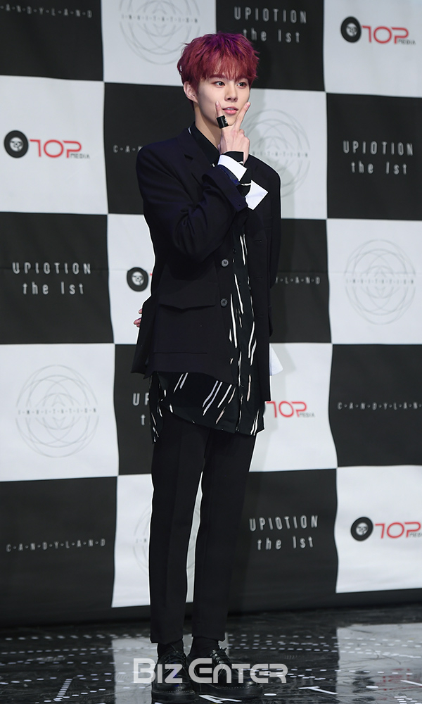 업텐션 우신이 16일 오후 서울 강남구 청담동 일지아트홀에서 열린 업텐션(UP10TION) 첫 번째 정규 앨범 ‘INVITATION’ 발매 쇼케이스에서 포즈를 취하고 있다.