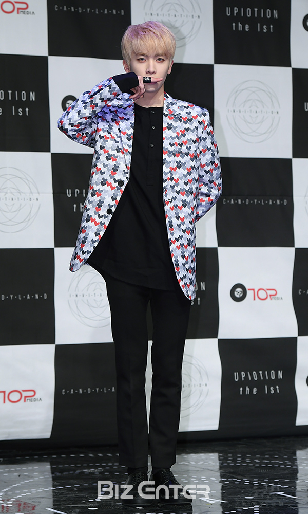 업텐션 샤오가 16일 오후 서울 강남구 청담동 일지아트홀에서 열린 업텐션(UP10TION) 첫 번째 정규 앨범 ‘INVITATION’ 발매 쇼케이스에서 포즈를 취하고 있다.