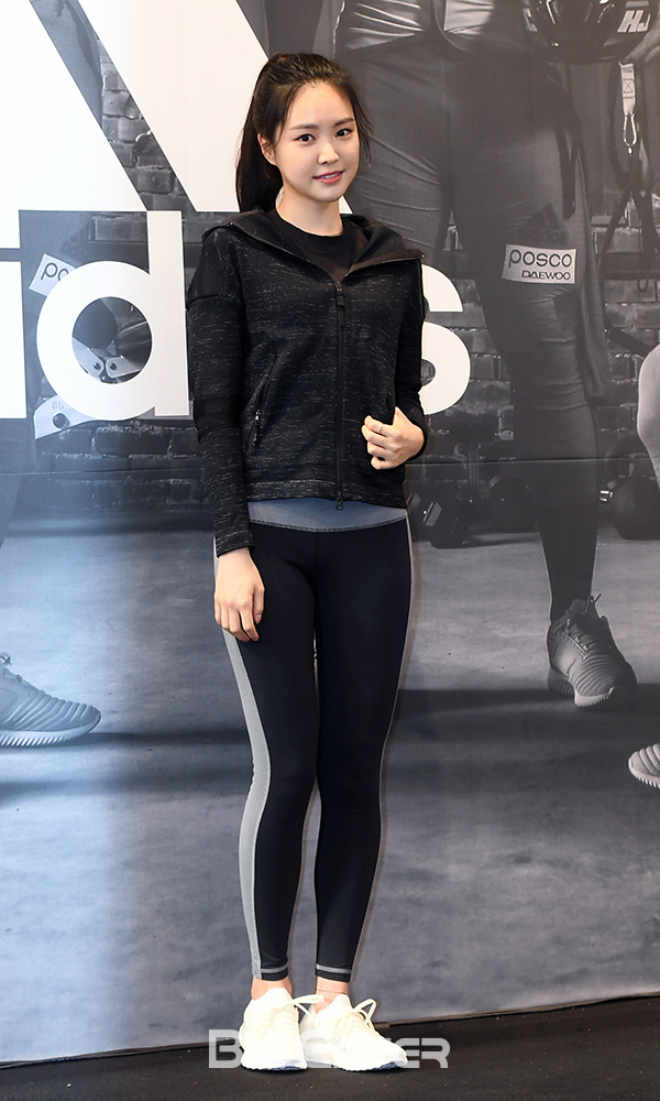 에이핑크 손나은이 17일 오후 서울 강남구 역삼동 아디다스 강남 브랜드 센터에서 열린 ‘윤성빈, 원윤종, 서영우, 에이핑크 손나은과 함께하는 특별한 만남’ 행사에 참석해 포즈를 취하고 있다.