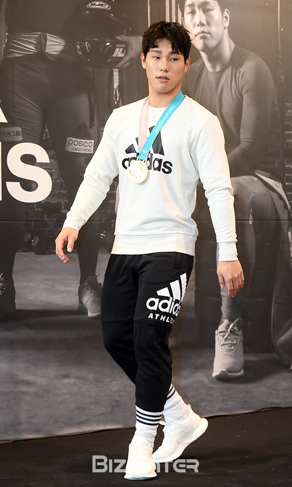 스켈레톤 선수 윤성빈이 17일 오후 서울 강남구 역삼동 아디다스 강남 브랜드 센터에서 열린 ‘윤성빈, 원윤종, 서영우, 에이핑크 손나은과 함께하는 특별한 만남’ 행사에 참석하고 있다.