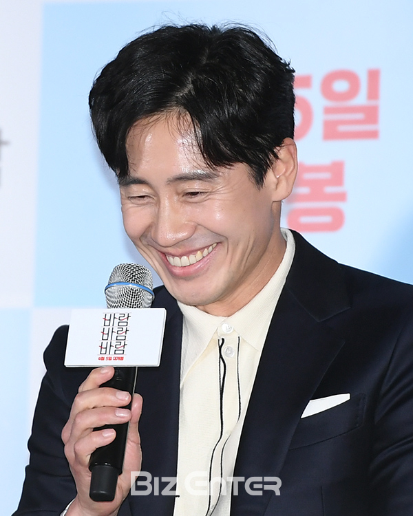 배우 신하균이 22일 오후 서울 용산구 CGV용산아이파크몰에서 열린 영화 ‘바람 바람 바람’(감독 이병헌) 언론시사회에 참석해 질문에 답하고 있다.
