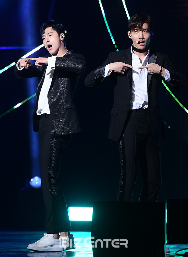 동방신기가 28일 오후 서울 용산구 한남동 블루스퀘어 아이마켓홀에서 열린 동방신기 정규 8집 ‘뉴 챕터 #1 : 더 찬스 오브 러브(New Chapter #1 : The Chance of Love)’ 발매 쇼케이스에서 무대를 선보이고 있다.