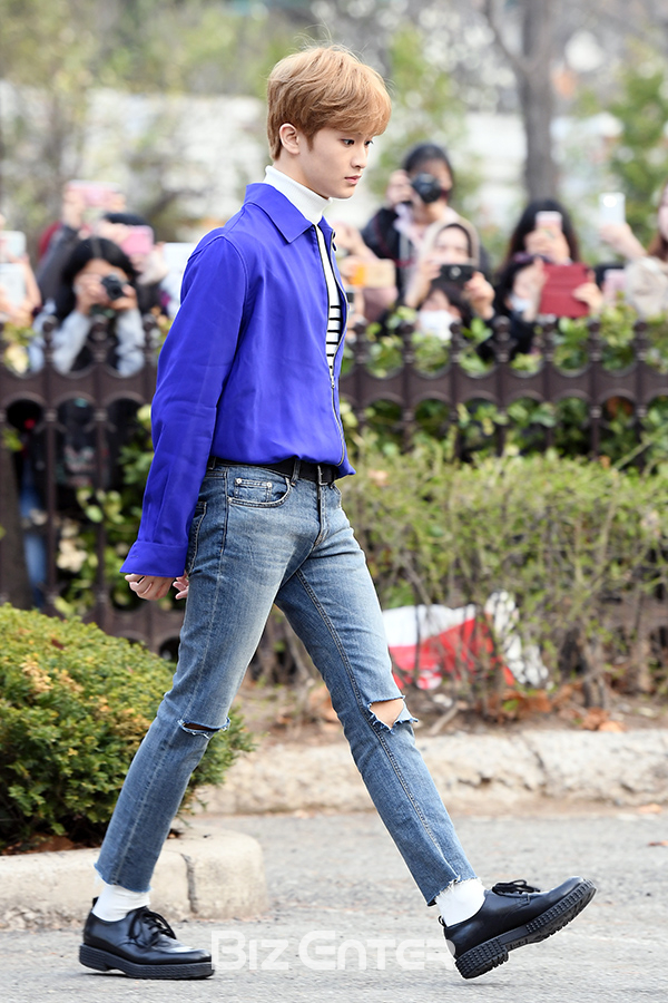 NCT127 마크가 30일 오전 서울 영등포구 여의도 KBS홀에서 열린 KBS 2TV ‘뮤직뱅크’ 리허설에 참석하기 위해 방송국으로 출근하고 있다.