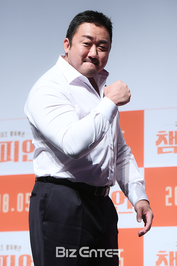 배우 마동석이 2일 오전 서울 강남구 신사동 CGV 압구정에서 열린 영화 ‘챔피언’(감독 김용완) 제작보고회에 참석해 포즈를 취하고 있다.