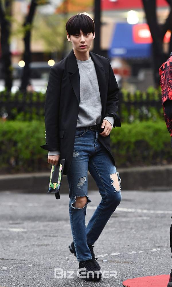 워너원 황민현이 6일 오전 서울 영등포구 여의도 KBS홀에서 열린 KBS 2TV ‘뮤직뱅크’ 리허설에 참석하기 위해 방송국으로 출근하고 있다.
