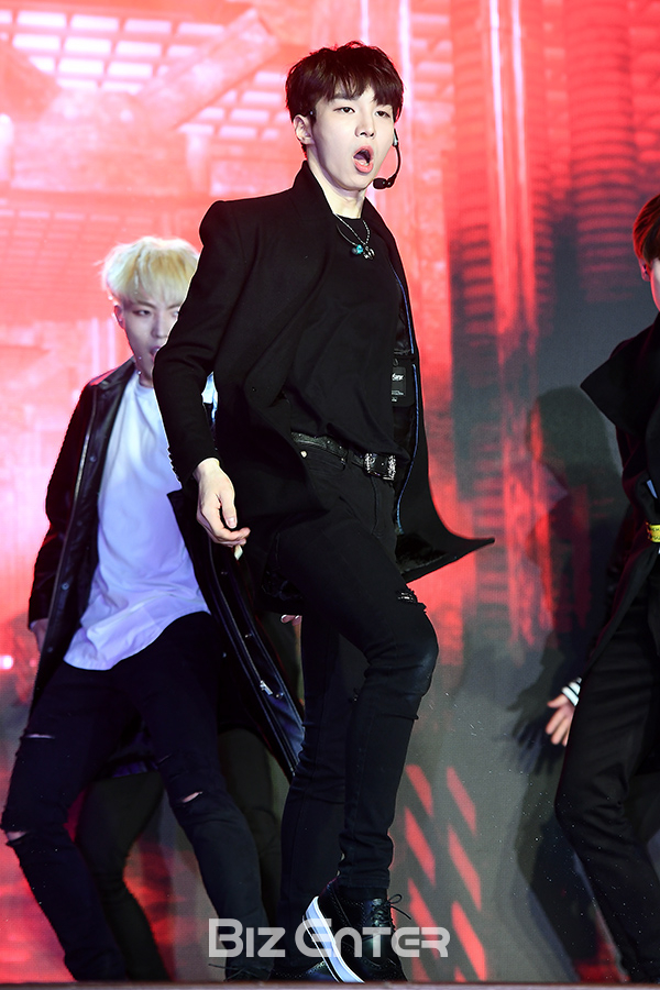 느와르 이준용이 9일 오전 서울 성동구 엔터식스 한양대점 메두사홀에서 열린 느와르(NOIR) 첫 번째 미니앨범 'Twenty's Noir' 발매 쇼케이스에서 무대를 선보이고 있다.