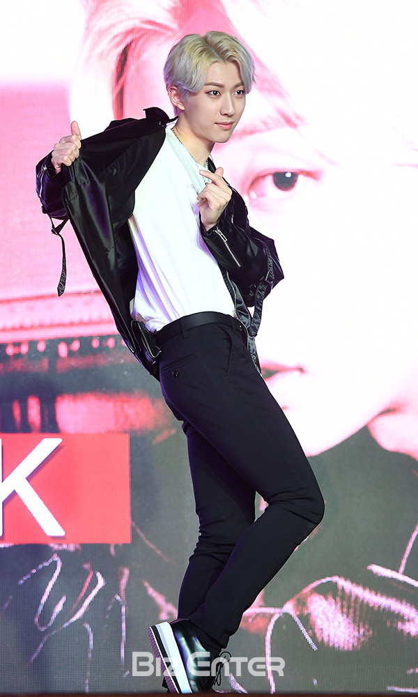 느와르 김연국이 9일 오전 서울 성동구 엔터식스 한양대점 메두사홀에서 열린 느와르(NOIR) 첫 번째 미니앨범 'Twenty's Noir' 발매 쇼케이스에서 포즈를 취하고 있다.